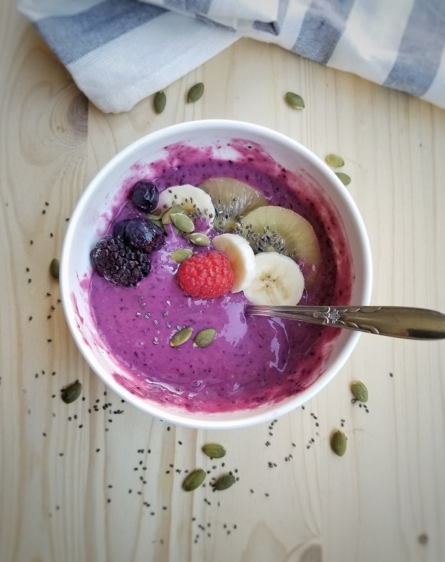Over the past year, I have been trying to eat less meat and more plant-based proteins. I was never a big meat eater, so the transition was pretty easy. To me, the change has been beneficial, especially for my gut. I have a lot less indigestion and heartburn. Trying to cooperate these ingredients in recipes has been fun too. Tofu is my favourite, I mostly use it in savoury dishes or soups, but I can also make it into a simple and nutritious sweet treat, like this smoothie bowl ! You can use any berries and toppings of your choice. For a thicker smoothie, freeze some of the berries first. Look at the beautiful and vibrant colours ! It’s definitely a treat for your eyes and your tummy !