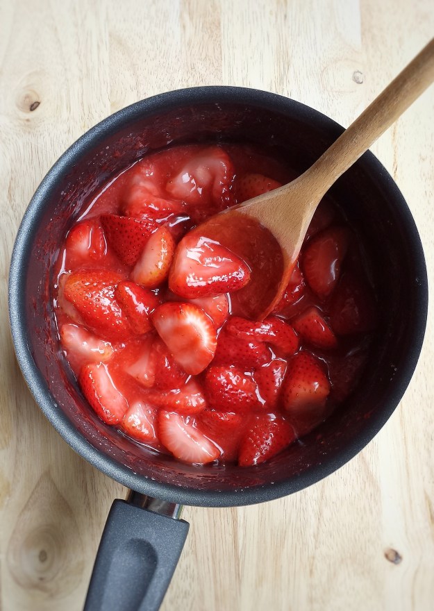 - In a non-stick pot, heat blueberries, sugar, lemon juice and lemon zest over medium heat