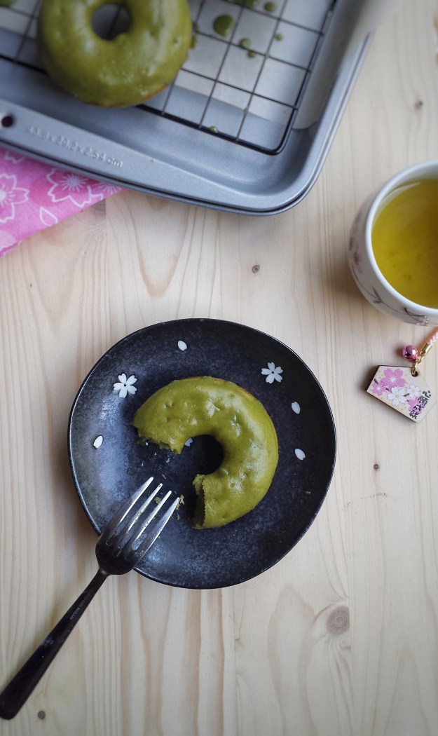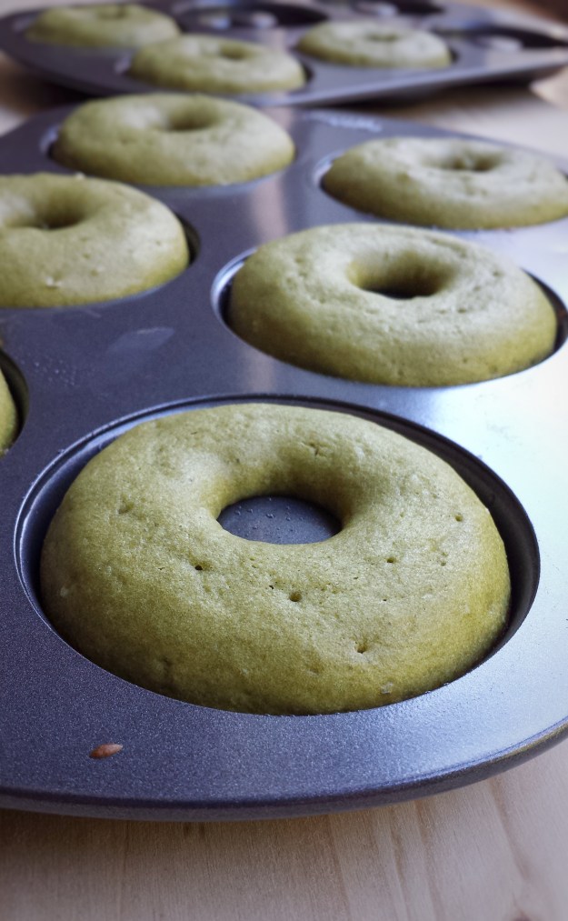 Matcha (green tea powder) is really popular there, not only as a tea, but in many desserts ! Mochi, cake, cookies, ice cream, shaved ice, parfait, latte……the list is endless ! I wish I could bring all of them home….or I can try making them myself ! Here are my Baked Matcha Doughnuts ! They are as delicious as the fried ones but “matcha” more easier to make !
